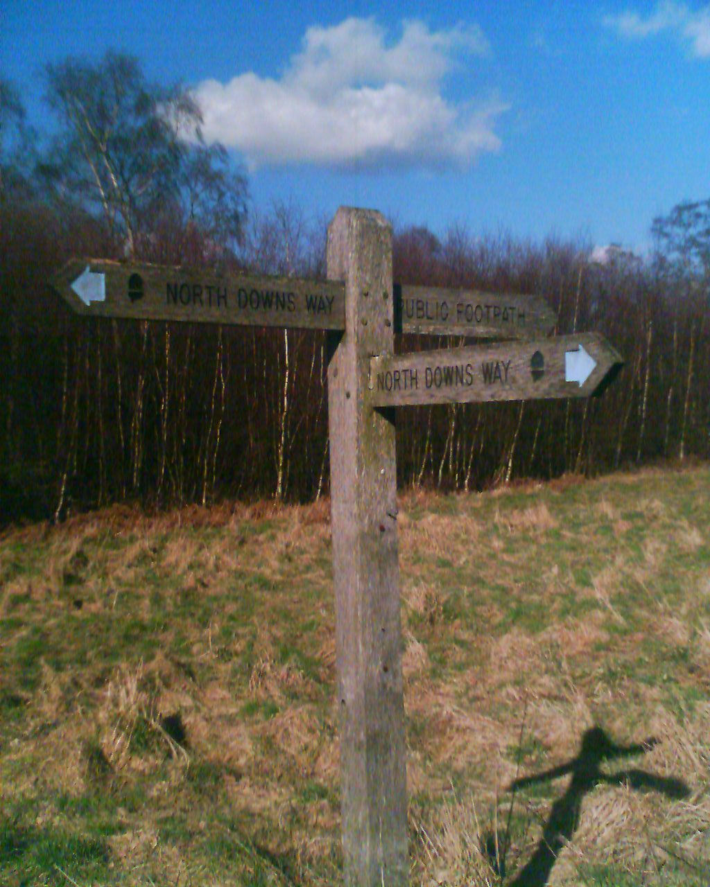 Once I finally got going, I made good progress, retracing my steps along the Wey South Path and easily picked up the NDW again. Just before I hit the countryside, a guy in a van passed me and told me that I’d be joined by 100 boys walking the route today. Great. I decided to make as good progress as I could while I had the walk to myself, and made good time along the bridleway leading up to St Martha’s Hill.