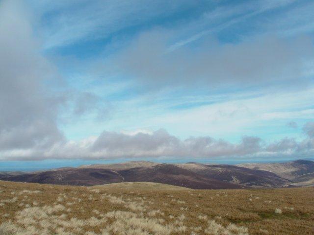 With full pack and provisions for 4 days, I knew the slog up Skiddaw was going to be slow and so it proved, taking over 2 hours. The wind grew in strength as I rose higher, and the cloud gradually lifted from the summit. Just after 2pm I arrived on the summit plateau to be faced with a strong sidewind that I could feel pressing on my chest and making it harder to breathe. I quickly made my way over the top, past the summit and main shelters, taking refuge at the last shelter at the northern end of the summit plateau.