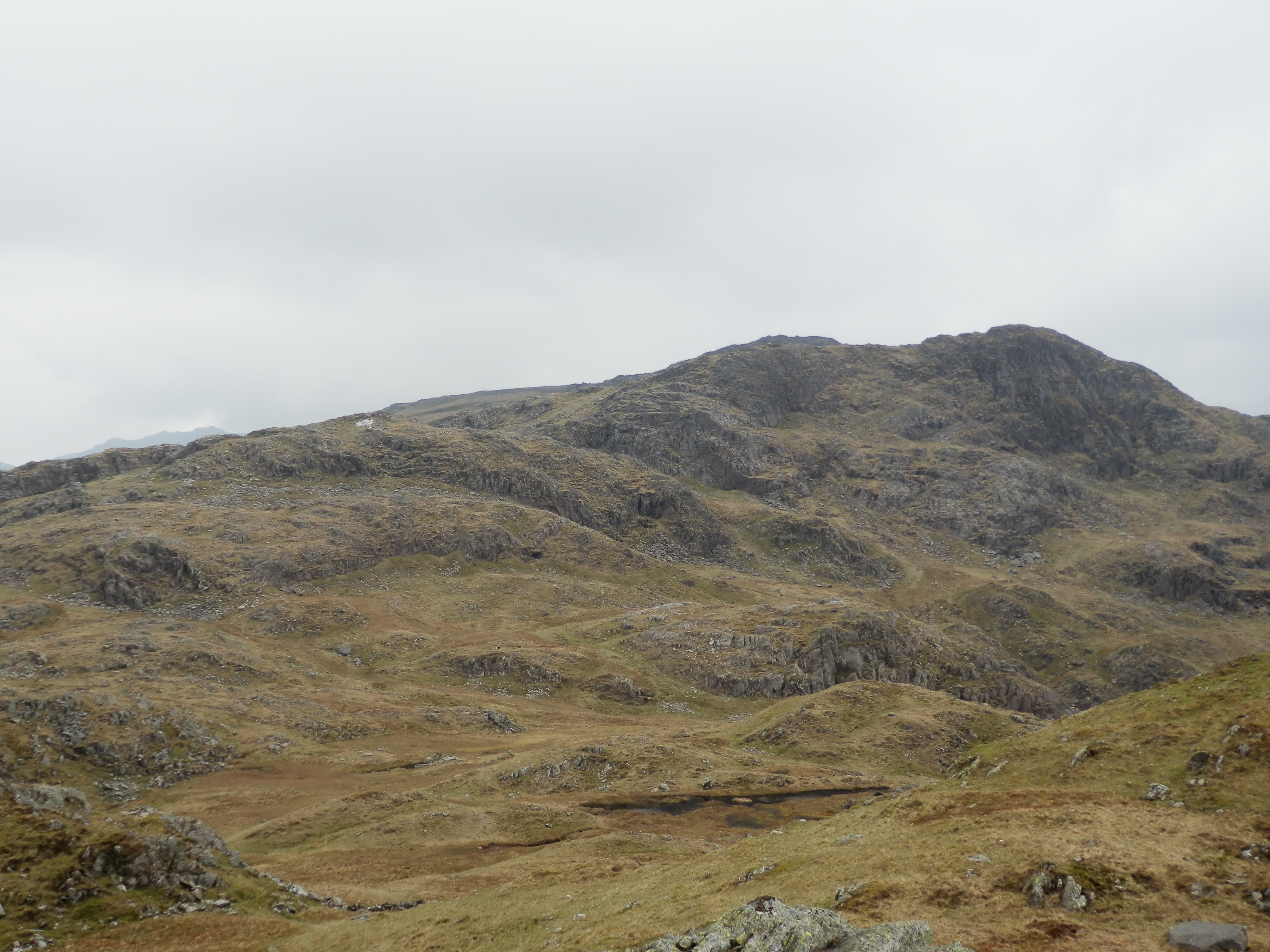 Next stop Dovenest Top an unnamed, on the OS Explorer map, summit but pretty obvious as the next mountain. Along the way numerous small tarns, or maybe some were just puddles, dotted the route, and I knew I’d be increasing my tarn score significantly today. At the top of Dovenest, I looked south to the top of the Combe and the ground getting higher up towards Glaramara itself.  It looked a bit grey and murky over there though.