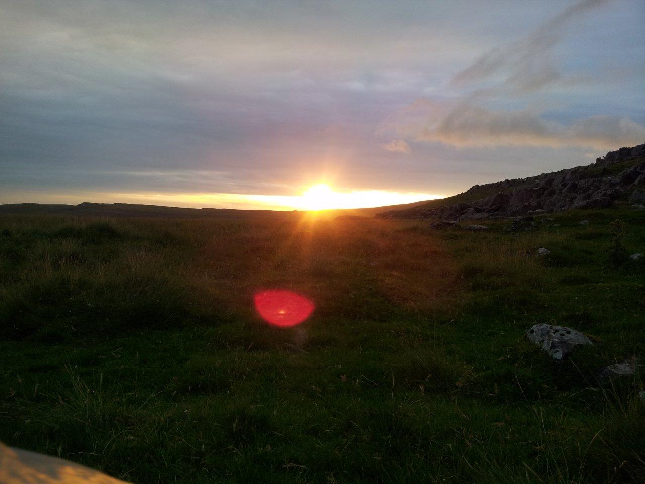 Having had some discussion on Twitter over recent days about the Scarp, Stuart was keen to see one in the flesh silnylon and I showed him around. Dinner eaten and the temperature dropping, we retired to our tents, with Stuart moaning about having managed to leave his iPod behind in the car, thereby sentencing him to the sound of his tent flapping and me snoring during the night. Â Feeling the breeze rising and expecting some precipitation, I decided to put the crossing poles on the scarp. Â At least that way I could justify having lugged them from home and up the hill. And to see if Stuart noticed. As the sun went down, we joked about the orange glow in the sky over Kingsdale being the car burning.