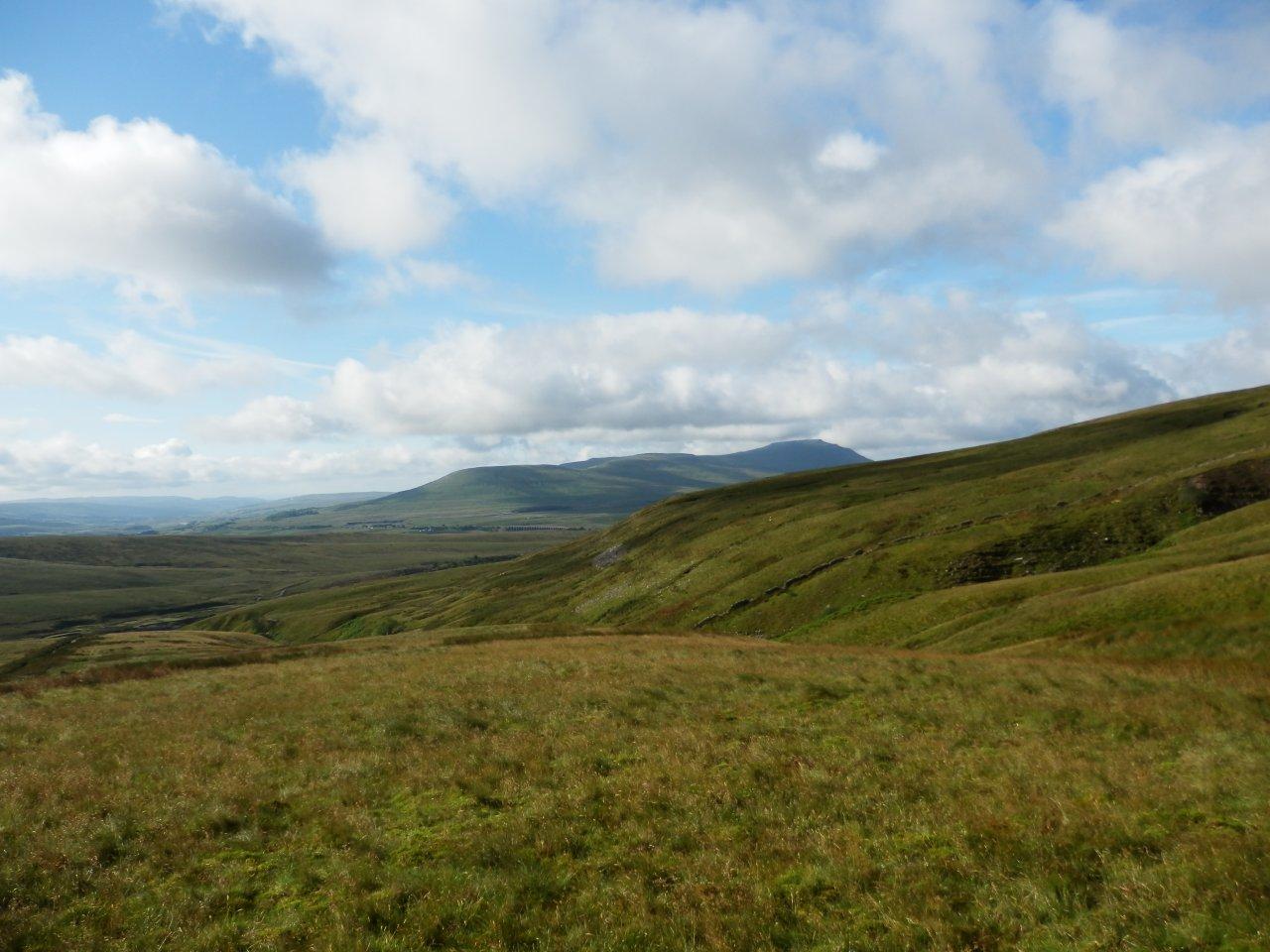 The ground steepened as we swung left to climb up onto the ridge, still enjoying the views back to Ingleborough and the Ribble Valley.