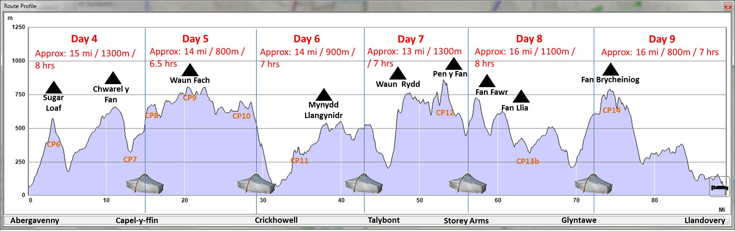 Please do, more than happy to have a bit of local expertise. I’ve worked some out based on what looks like flattish ground with shelter if needed, but I’d much rather have some spots in mind that I know will be decent. You can probably work out roughly where mine are from my description and route profile 😉
