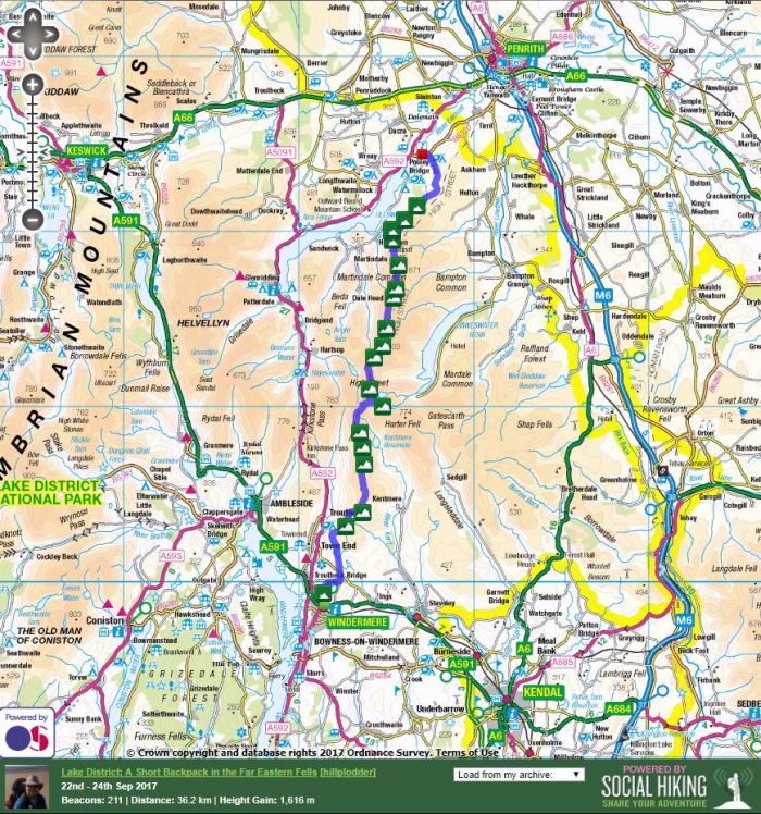 I set off back down to Swarth Beck and up onto Arthur’s Pike, the decision as to the rest of the day not yet fully made. The forecast is clear for longer than anticipated, but against that I pushed further yesterday, so have relatively little of my route left to do. I have three options – finish at Pooley Bridge (breakfast!), walk to Penrith or backtrack to pick off some more fells and eke out the ok weather. Breakfast obviously wins and I head down, stopping only to talk to a guy who must surely hold the world record for the number of times the f-word can be put into a single sentence. I escape him and head for the caff.