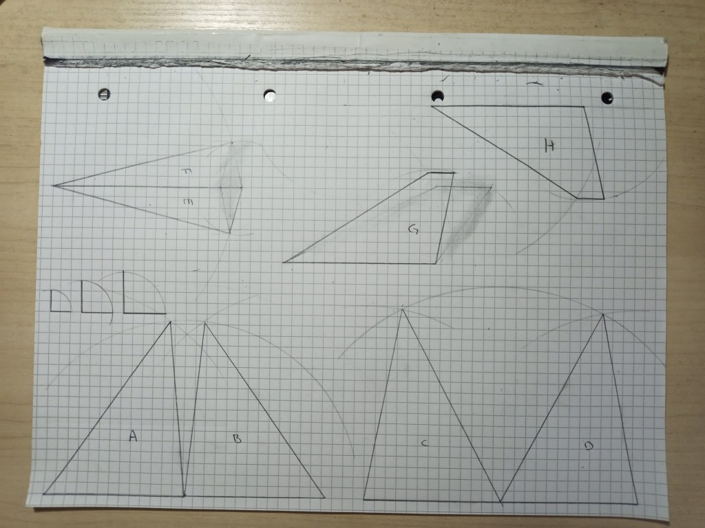 The first prototype is simply the design transferred to paper at an appropriate smaller scale. This helps check the measurements and the geometry. I end up with something small that’s quite fiddly to put together, but it does give me a first glimpse into the overall shape of the shelter.