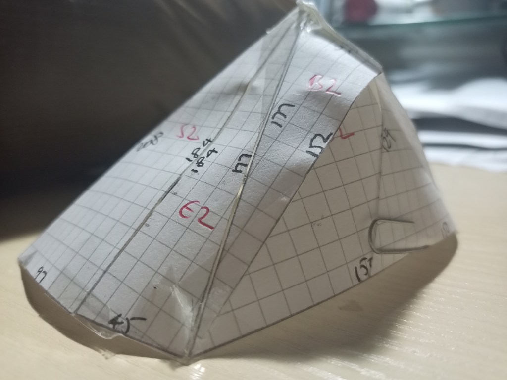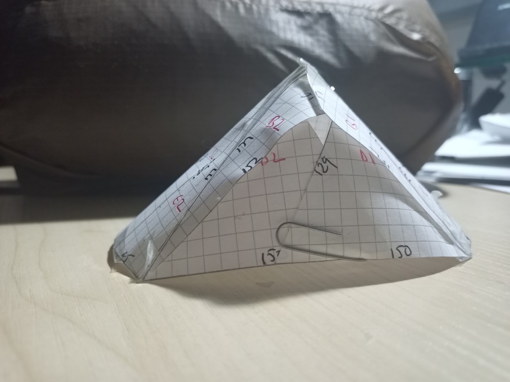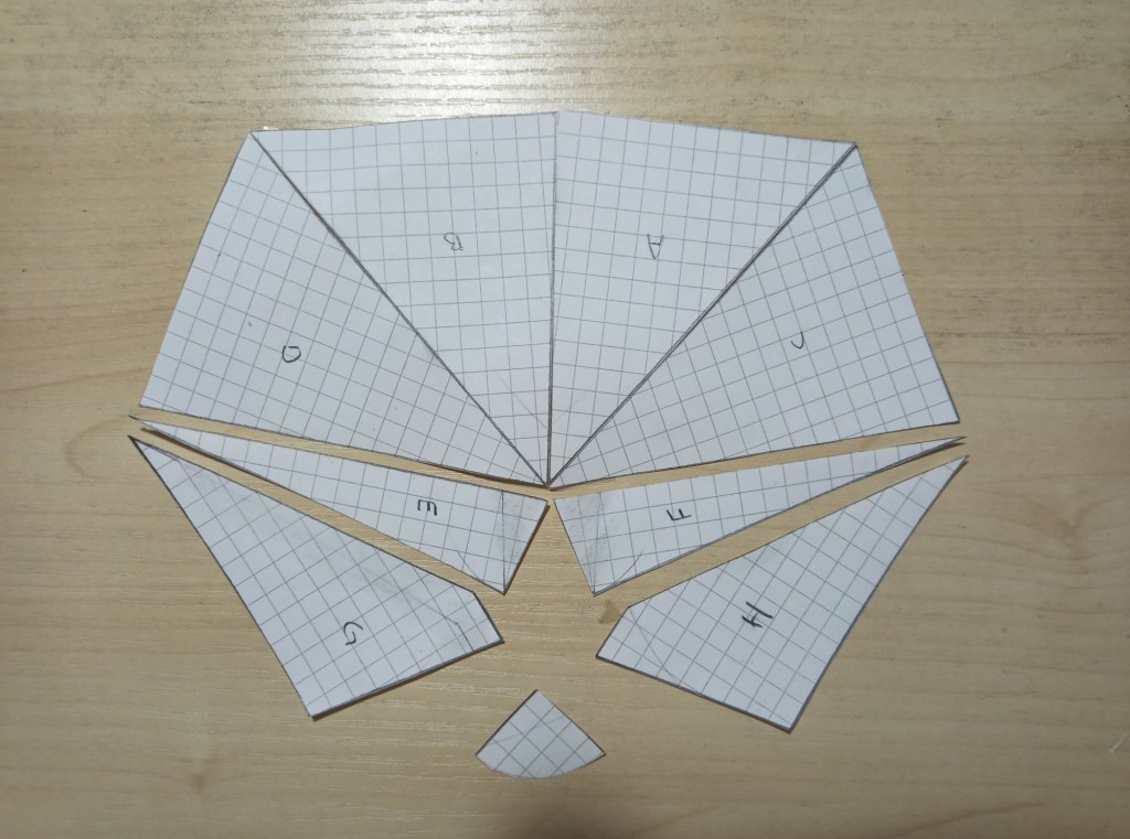 When I’ve done this and recorded the cutting layout, I can then use the tent shapes to build the model itself. In this case I didn’t bother with seam allowance etc and instead merely sellotaped the joins together as closely as I could.