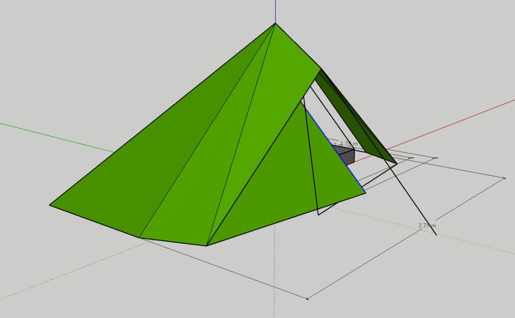 I’m pretty happy with the back and sides of the tent, and the main floorplan. When I look back over the iterations of design, it is pretty obvious that they haven’t changed much – all along it was really just a matter of finding the optimum balance of dimensions: I already knew the size and shape of inner I would want to use.
