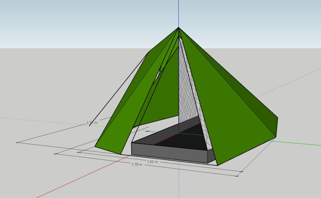 My first thought was to simply keep the back and sides of the tent the same and just play with the doors. But ultimately, having a beak results in reduced entry space, and this is made worse by incorporating a vent too.