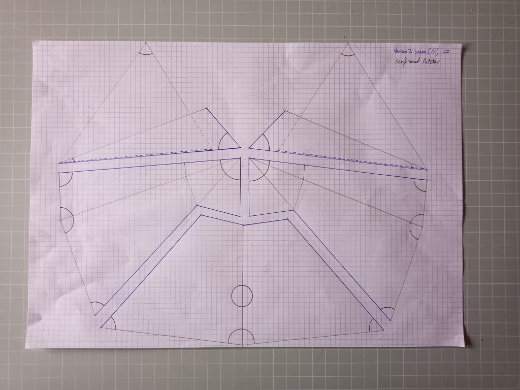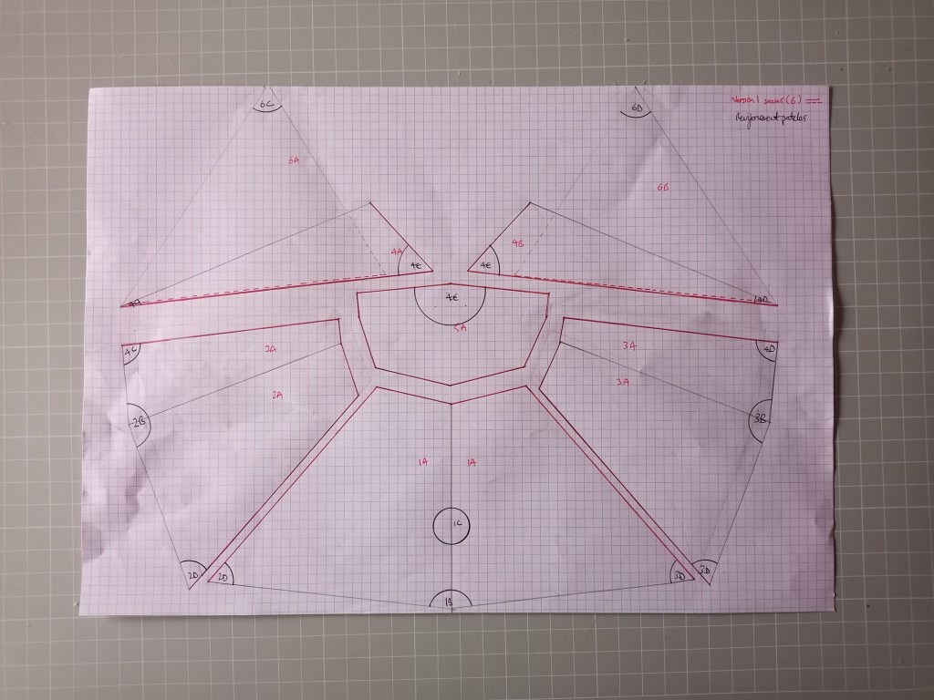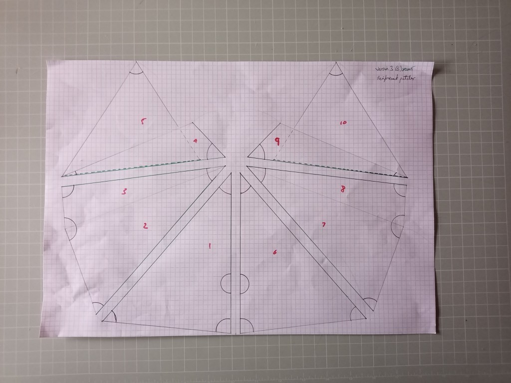 Already having doubts about the method, following my own first attempt where I couldn’t tell which seam was which at the top of the tent, I went back to the drawing board and considered alternative cutting out arrangements.