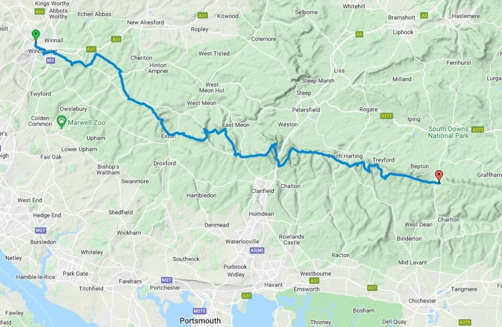 Winchester to Cocking: 64km (40 miles), 1,369m ascent (4,491ft)