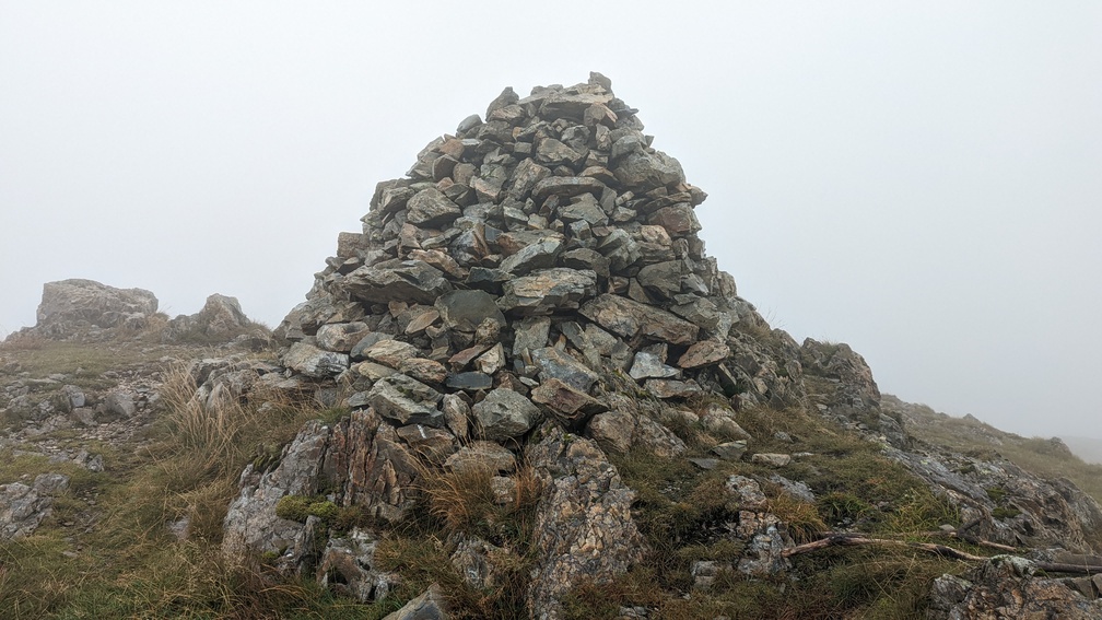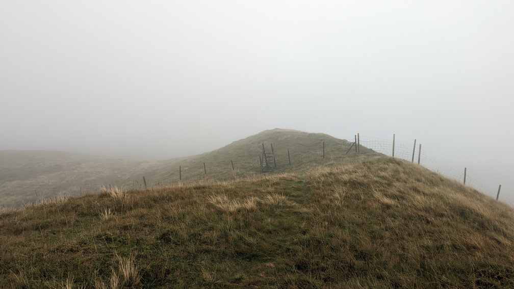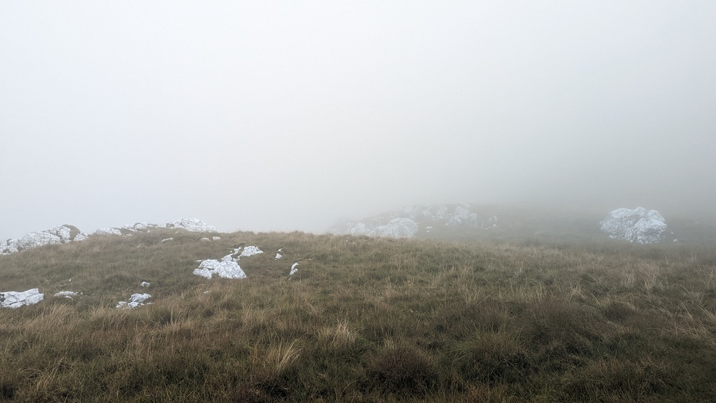 I couldn’t see much though as surrounding hills were shrouded in cloud. Also being exposed to the wind, it was a bit cold, so I decided to push on.