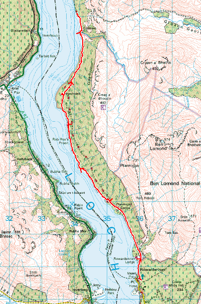 It didn’t take long to get to Inversnaid, where I found a coach party enjoying the waterfalls. Exiting the car park, I was confronted with a diversion sign for a broken bridge, but ignored it and found it easy to hop across the burn instead.