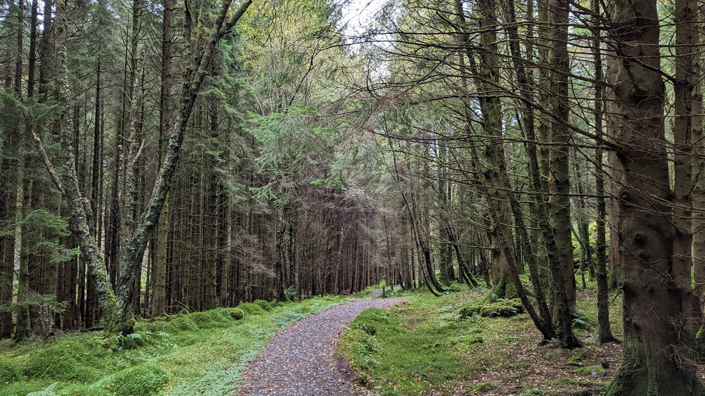 Across the A82 and railway (that darned sheep creep), I could see the forest above Crianlarich getting ever nearer. I climbed up to the halfway point on the trail, and was glad that my timings meant there was no need for a detour into Crianlarich itself – it looked a fair bit of descent and reascent.
