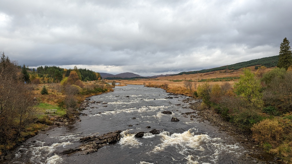 Under the railway and then across Allt Kinglass. An easy walk into Bridge of Orchy where we stopped off at the picnic area for lunch and a brew.