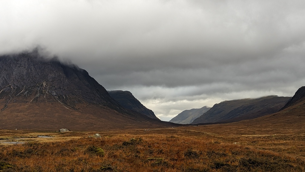 And the opening out of the views revealed a classic West Highland Way picture. Ahead we could see the Kingshouse Hotel – our destination.