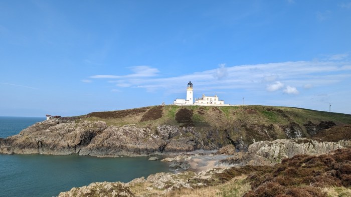 A bit more cliff top work, after finding the right way up through a rocky defile, and we were approaching the lighthouse. A cold wind keeping temperatures down on what would otherwise have been a pleasant day.