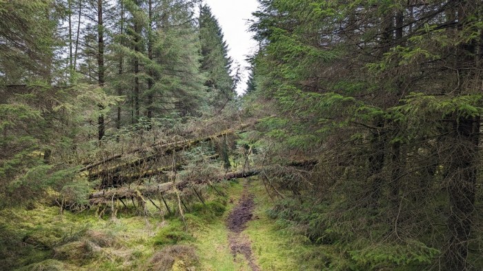 The descent to Culmark from Culmark Hill was dogged by some iffy waymarking, but eventually I was on the track leading away from the farm and heading up towards forest.