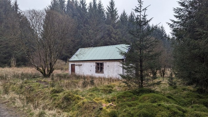 Allan’s Cairn was a bit underwhelming so I pushed on, keen to finish the day’s walk. A descent on stony track brought me to Chalk Memorial Bothy, and sticking my head inside I found Afke.