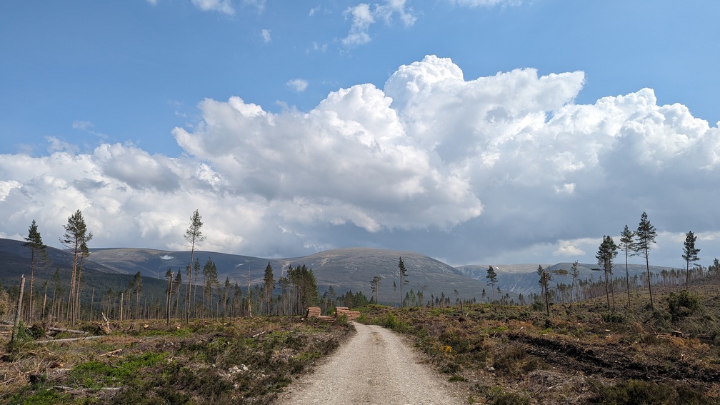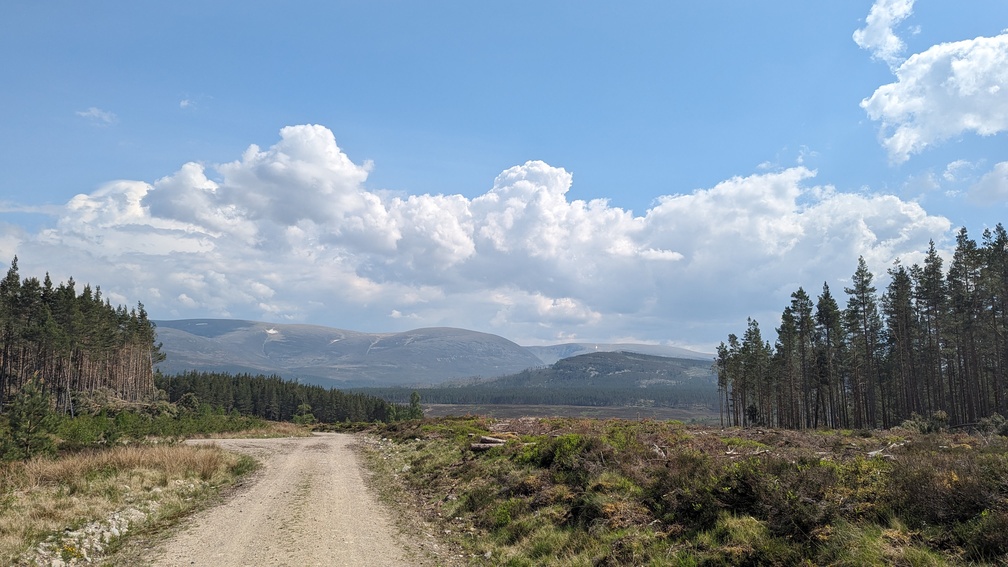 I followed a succession of forestry tracks until the mountains the other side of Glen Feshie came into view.