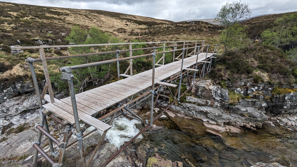 Crossing the Feshie itself was notable for the fact that below the bridge on one side was a party of nudists bathing.