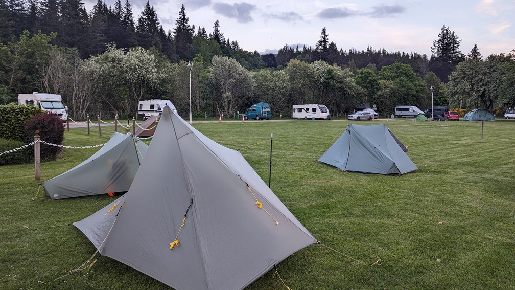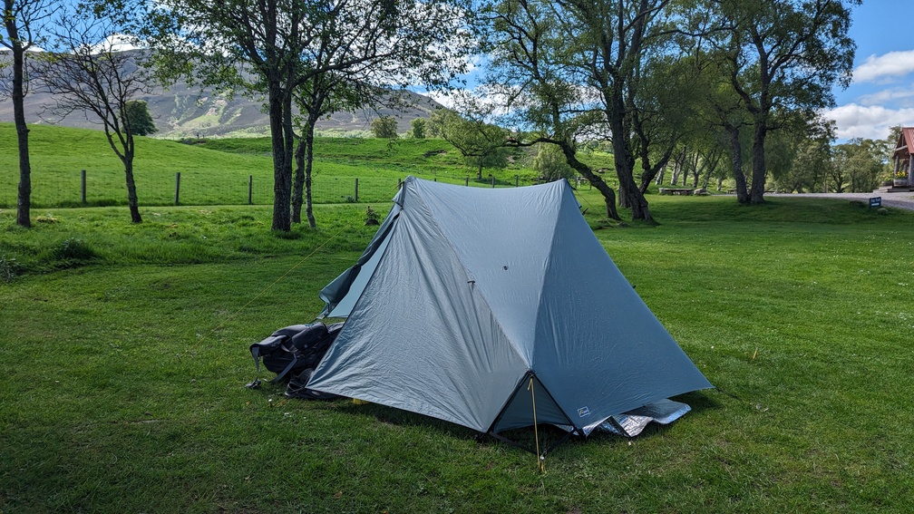 In Braemar, I made for the Bothy coffee shop first, got myself coffee and cake and bumped into Elli again, along with Maxence who’d retired and was now cherry-picking his way through bits of his walk to the coast. I picke dup some supplies and headed for the campsite to chill out and rest the foot.