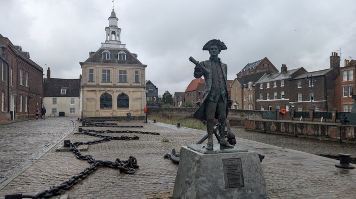 I made my way to the riverfront, passing this statue of King John (Lackland) on the way. “Lackland” because he was the youngest son and therefore not expected to inherit any, but it proved apt as he he turned out to be good at losing territory, namely the Duchy of Normandy. He was good at losing other stuff too – notably the crown jewels in the Wash. A man with a penchant for wives named Isabella, for pissing off the people who would keep him on the throne, and who also managed to get himself excommunicated for good measure, the man was an absolute disaster. He’s routinely ranked as the worst King of England ever. I can think of several more successful people associated with King’s Lynn more deserving of a statue.