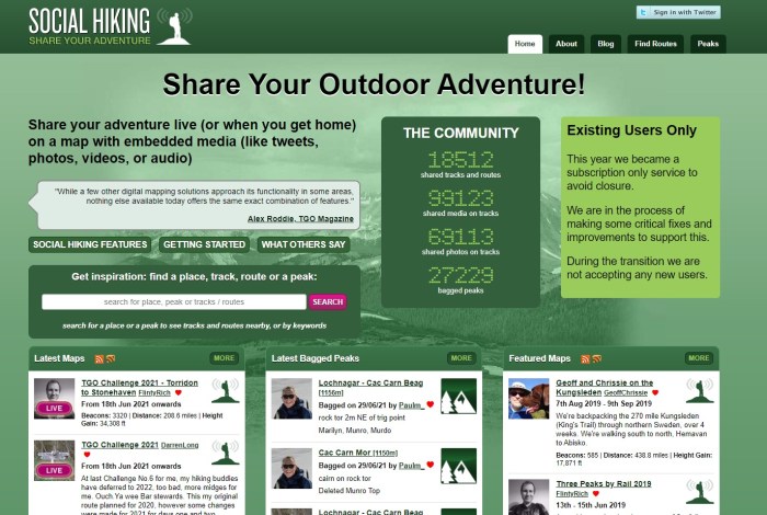 Social Hiking (shareyouradventure.com) dies tomorrow, and I spent much of yesterday backing up/saving down my tracks and routes, which took several hours. For anyone who has yet to do this, you've got until 10pm tomorrow night. A blog post by Phil explains what you can export and how. And while I was steadily working through … Continue reading Goodbye Social Hiking