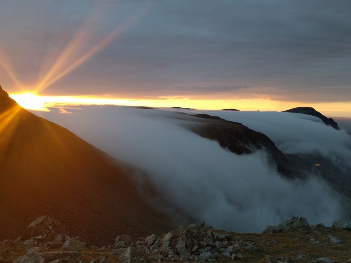 I stood watching the black silhouette of the Scafells against a redish glow gradually infiltrating the sky above. As more light spread across the land, the glow became an intense orange concentrated behind Great Gable. A time for contemplation of the walk so far, and the walk ahead. Today was forecast … Continue reading The Valley of Sluggishness